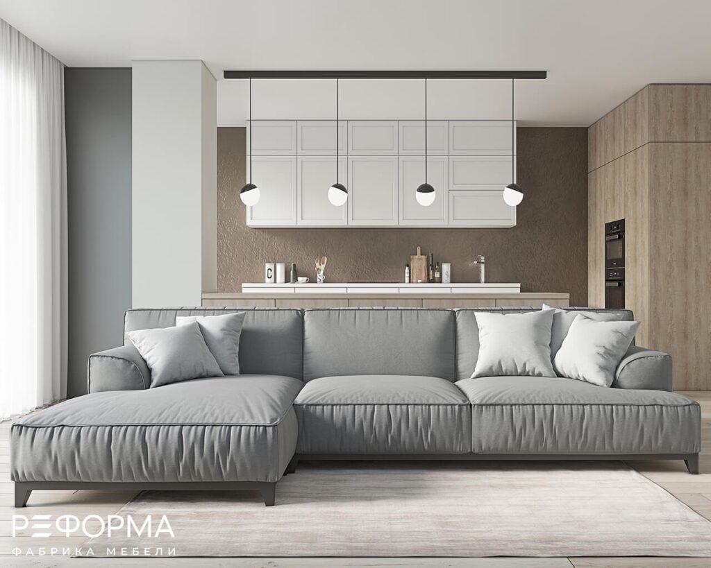 Это уже мебель для комнаты средних и больших размеров. С ее помощью удобно зонировать пространство. Например, отделить зону отдыха от зоны, где играют дети. В маленькое помещение тоже можно поставить угловую модель, но только если комната не заставлена другими предметами интерьера и диван туда влезает.