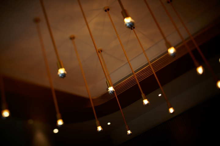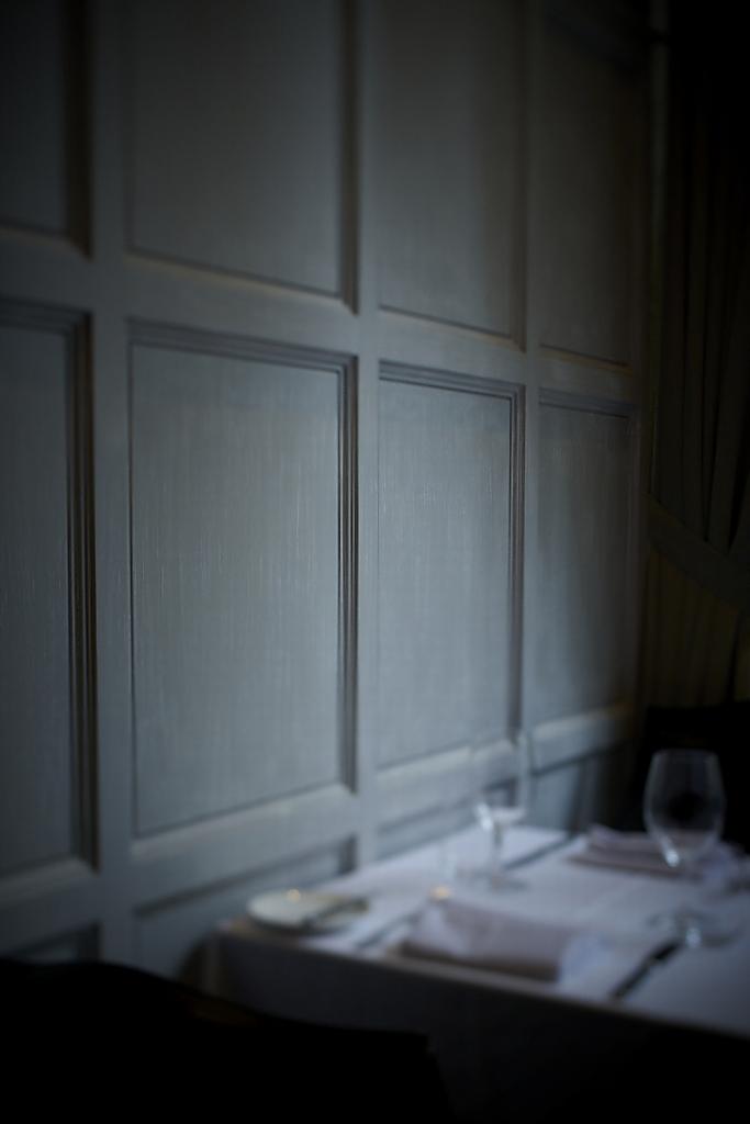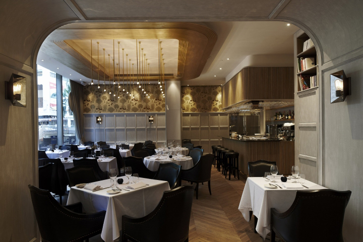 С момента, когда переступишь порог и до выхода из ресторана, окутывает спокойствие, уединение, благодаря своеобразному захватывающему интерьеру. А наблюдение за вечно движущимися людьми за окном дает ощутить себя в маленьком мире лишенного забот и суеты. Здесь можно расслабиться и предаться восхищению идеально сочетающихся предметов интерьера. Завораживают подвешенные на тонких трубках серебристые светильники, похожие на капельки света. На стенах размещены работы сделанные фотографом Sebastin Bonin.