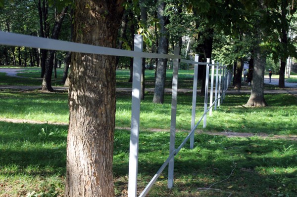 В Витебске на месте строительства Софийского собора в парке Партизанской славы появилось ограждение