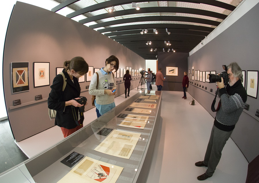 В Третьяковке, где представлены и архитектурные, и выставочные проекты Лисицкого, акцент сделан на живописи. Под нее заточена предложенная Евгением Ассом архитектура — стены, выкрашенные в терракоту и светло‑серый, отвечают цветовой гамме живописных проунов, привезенных в Москву из Художественного музея Морицбург (Халле), Стеделийк музея (Амстердам), Центра Помпиду (Париж), Художественного музея Базеля и Национального музея искусств Азербайджана им. Р. Мустафаева (Баку).