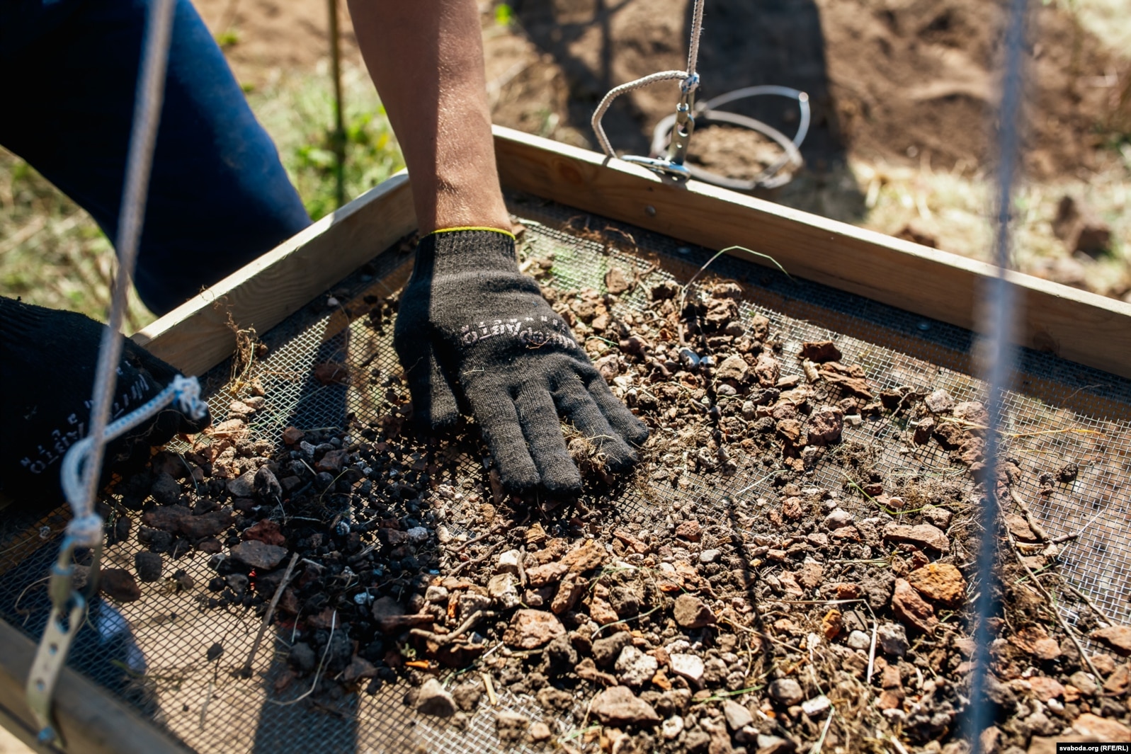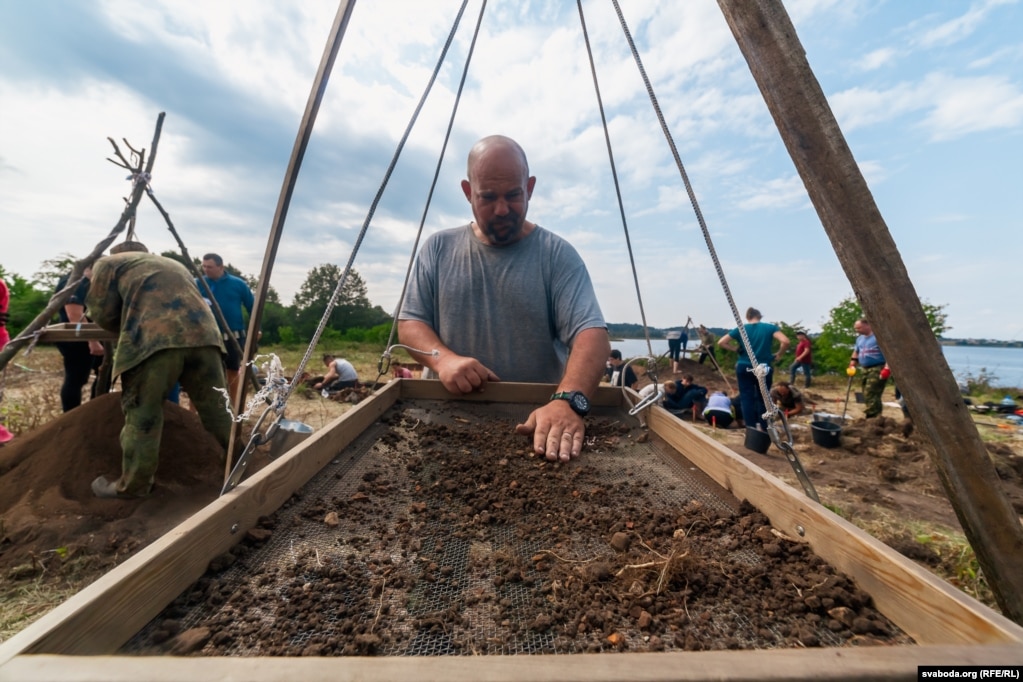 Зямлю з кожнага квадрата на раскопе ўважліва пераглядаюць. Каб не прапусьціць дробных знаходак, яе дадаткова прасейваюць празь сіта. Сярод археолягаў стаяць на сіце — самая чорная праца. Чарней, хіба што, рухаць адвал — сачыць, каб выкапаная зямля ня трапіла назад у раскоп. Так днямі на сіце знайшлі пенязь Аляксандра Ягелёнчыка зь нізкапробнага срэбра.