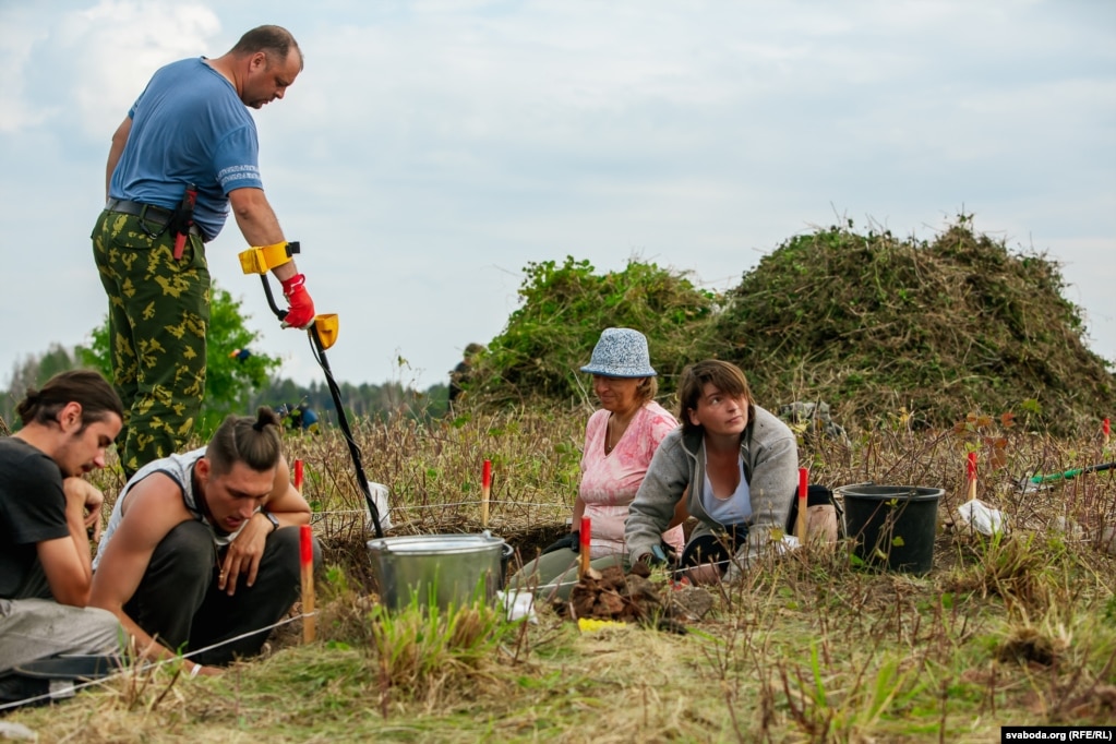 «Сюды раней авечак пасьвіць прывозілі. На лодках. Тады тут такіх зарасьцяў не было», — кажа Галіна. Яна жыве ў Шавурах. Гэта наступная за Рубяжом вёска ў бок Слабодкі. На дзень Галіна пакінула хатнія клопаты, каб паўдзельнічаць у раскопках. — «Пасьля па ягады сталі прыплываць».