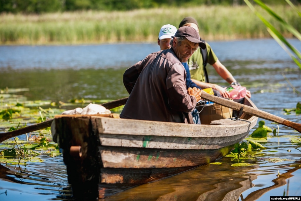 Ад лягера да месца пераправы на Несьпішы 7 кілямэтраў. А дзявятай раніцы на беразе чакае Сьцяпан. Ён таксама валянтэр — на сваёй лодцы перавозіць на востраў наведнікаў.