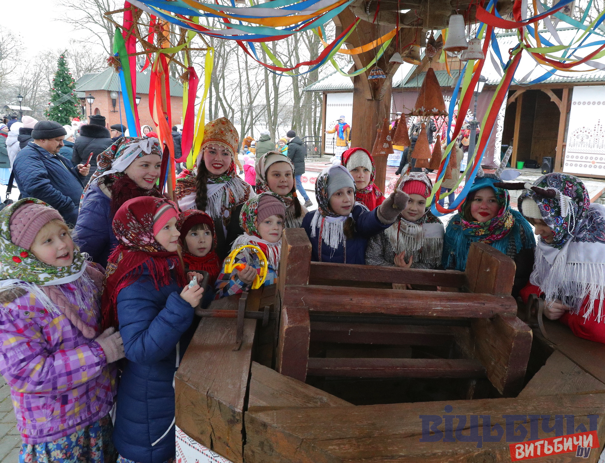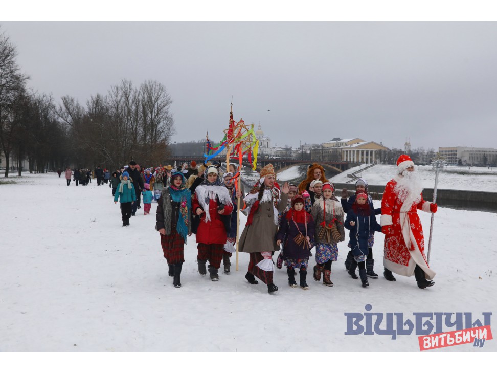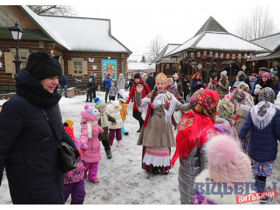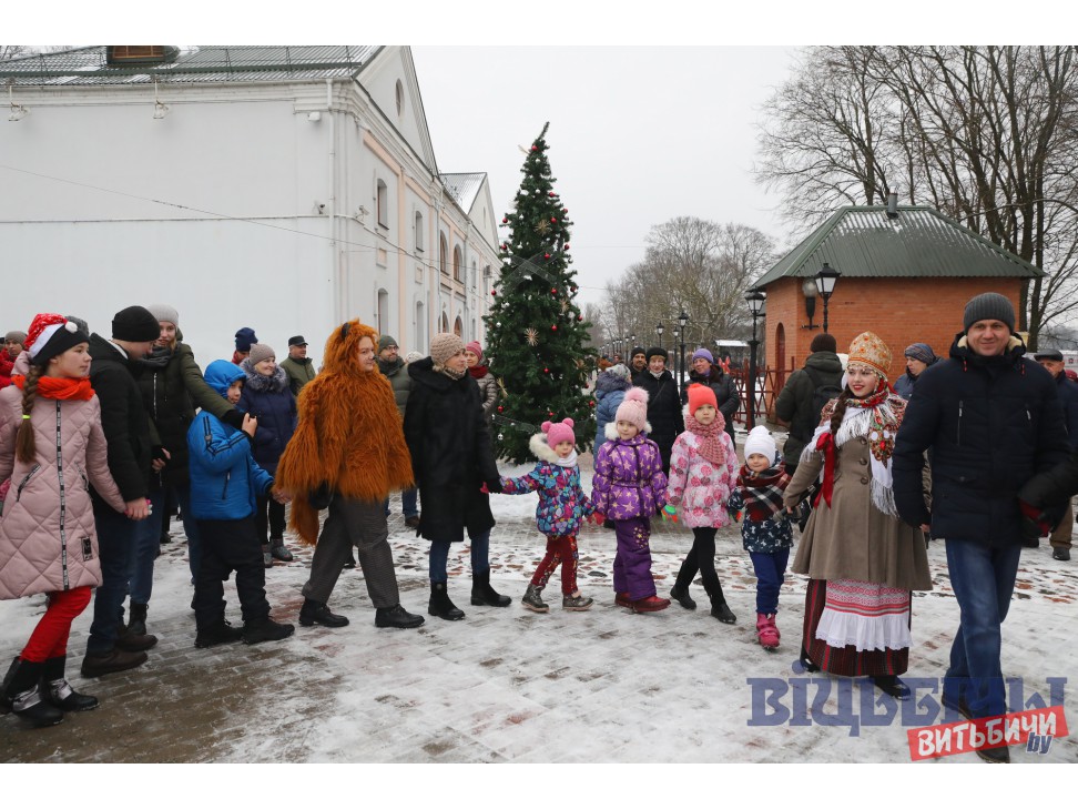 Красочный веселый праздник подготовили участники народного ансамбля народной песни «Сябрына», ансамбля народной музыки «Жалейка», клубов исторической реконструкции, сотрудники культурно-исторического комплекса «Золотое кольцо города Витебска «Двина». На подворье водили хороводы, звучали белорусские традиционные песни, все желающие могли поучиться белорусским танцам, посетить волшебный терем Деда Мороза, а также приобрести или просто полюбоваться на рукотворные вещи в сувенирной лавке, открытой городским клубом мастеров, который работает на базе комплекса и объединяет более 30 ремесленников и народных умельцев.