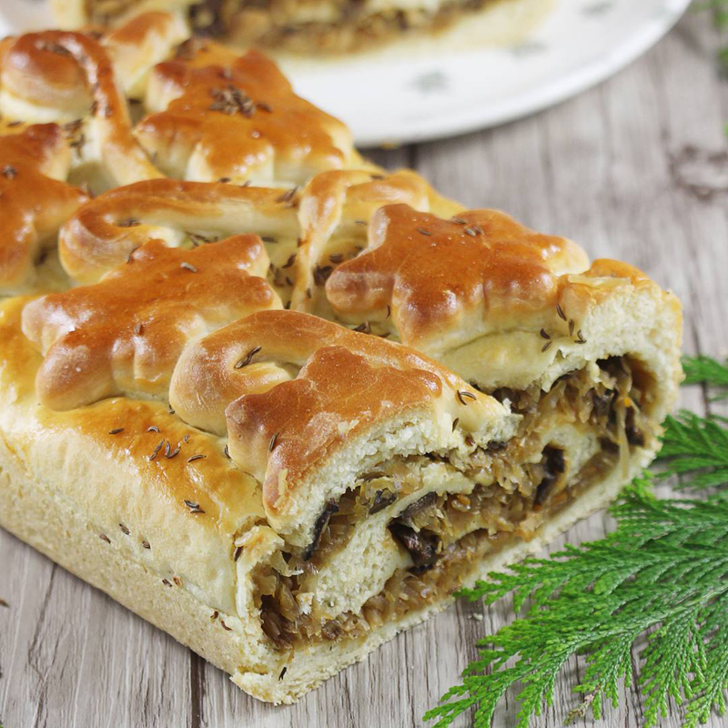 Кулябяка з тушанай з грыбамі капустай. Aniagotuje.pl.
