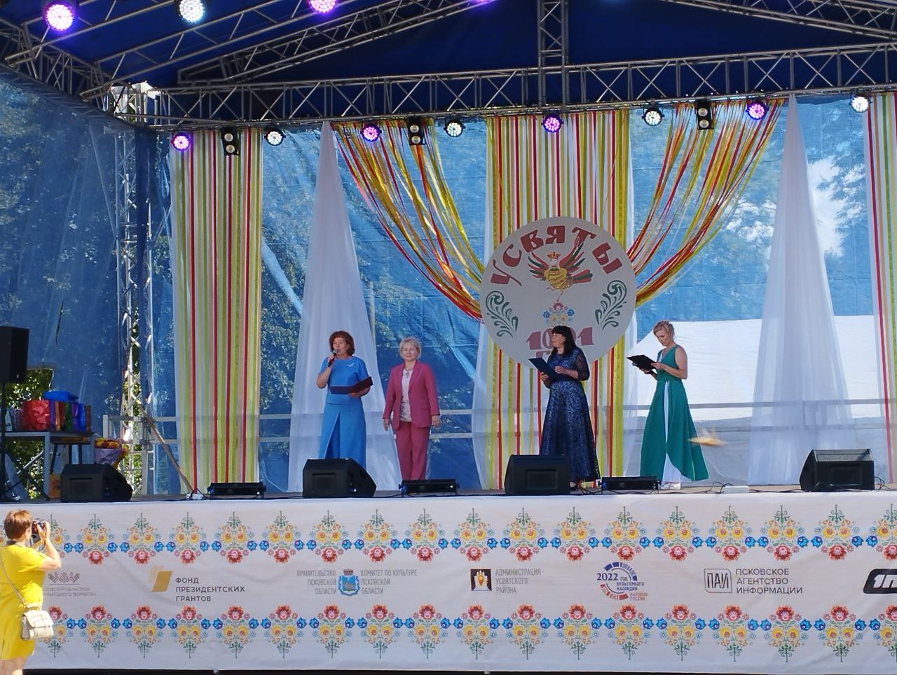 А еще делегация Витебского района приняла участие в фольклорном фестивале «Знак Русского», посвященном 100-летию Ольги Федосеевны Сергеевой, исполнительницы аутентичных песен, который проходил в деревне Церковище Усвятского района.