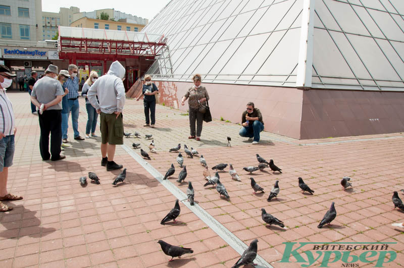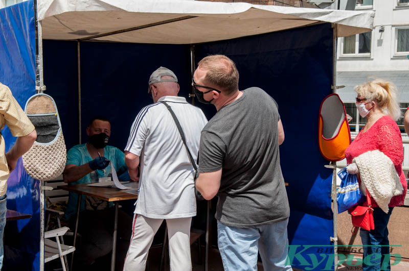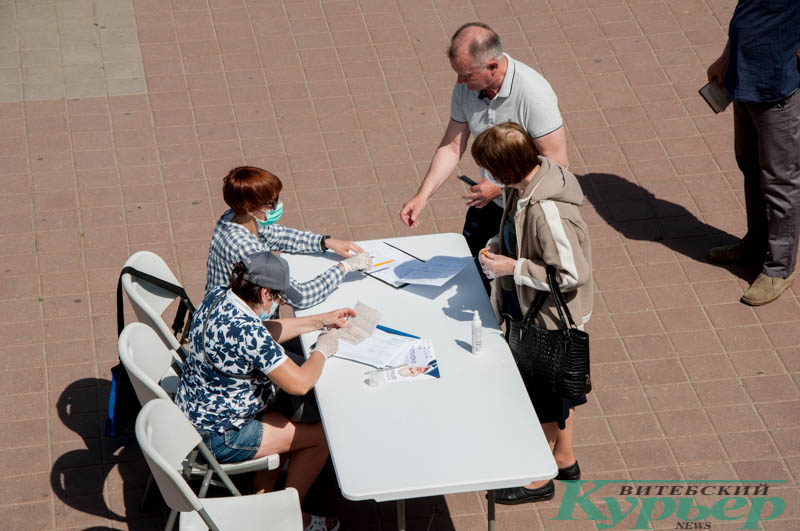 Люди мирно стояли в очереди, по большей части в масках и соблюдая интервал. Очень многие собирались группами и бурно обсуждали политическую ситуацию в стране. В основном, это были люди в возрасте. Но молодых лиц также было немало в очереди к столикам Бабарико, Цепкало, Тихановской и Черечня.