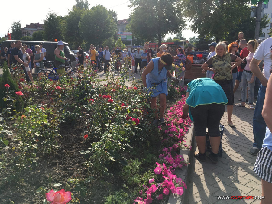 В 17.30 на площадке собрались случчане разных возрастов: некоторые пришли семьями, с детьми, пожилыми родителями. Часть людей наблюдало за происходящим на противоположной стороне дороги.