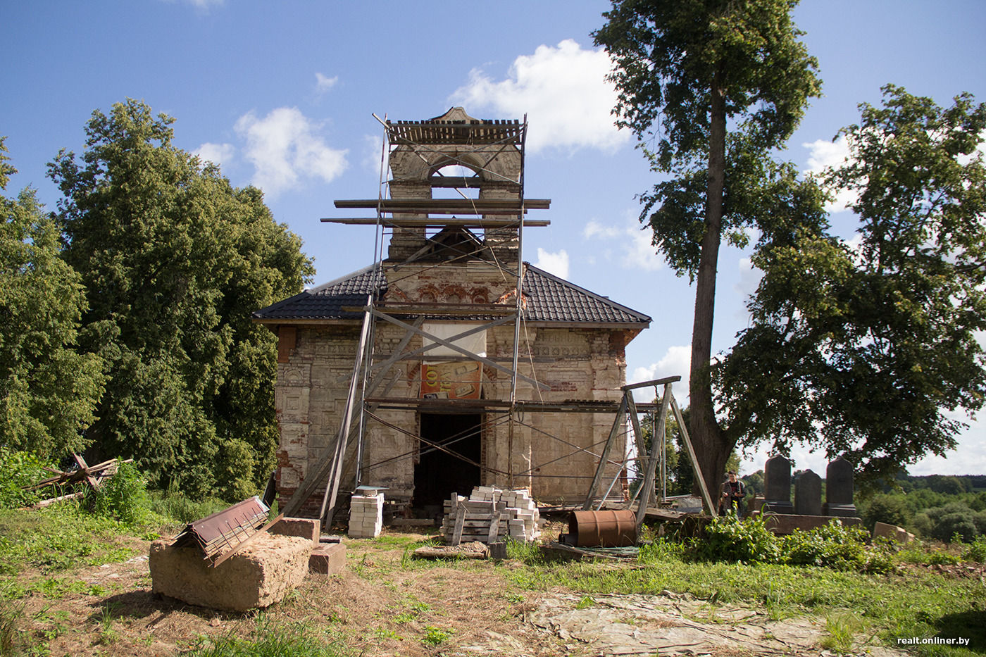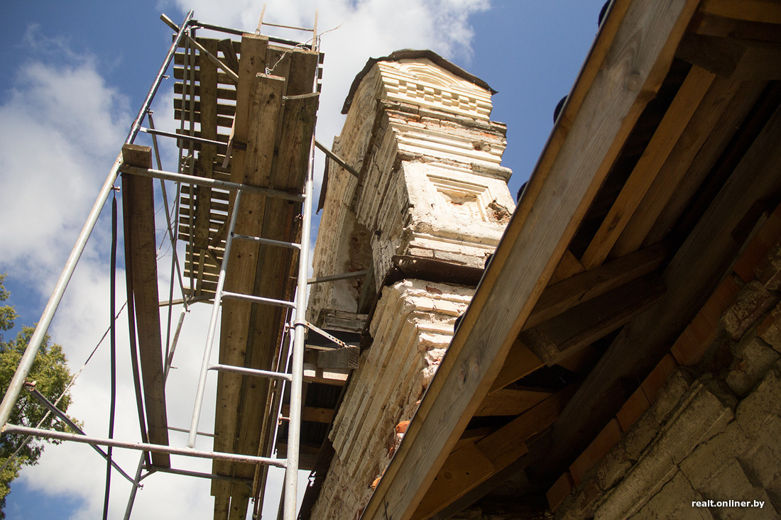 — Тут жа так: адну працу зрабіў — другая чапляецца. Да зімы трэба да канца ўмацаваць сцены і былую званічную арку, абавязкова паставіць шэсць вокнаў і дзверы. Вокны ўжо замовіў, з грашыма на іх дапамаглі людзі: сабралі на дабрачынны рахунак каля 1,5 тысячы рублёў. Гэта будуць звычайныя вокны ПВХ: тут ужо не да гістарычнай дакладнасці, трэба ставіць хоць нешта, каб захаваць будынак. Затым трэба будзе пакласці падлогу і брацца за ўнутранае аздабленне, тынкоўку. А потым не ведаю — можа, і сіл ужо не будзе, мне ж 65 гадоў. Ды і дэкор — гэта ўжо справа вузкіх спецыялістаў.