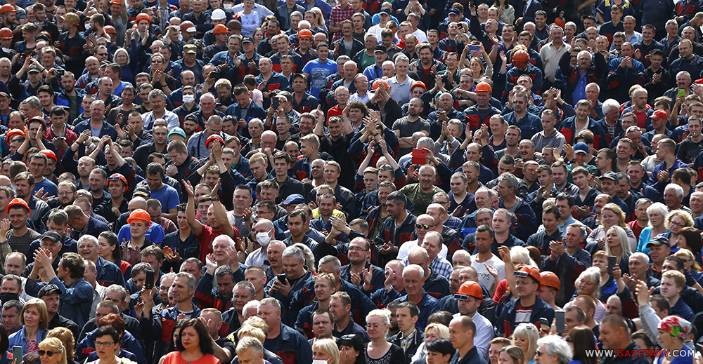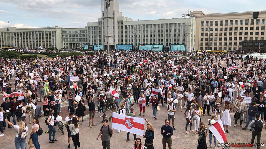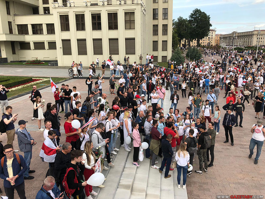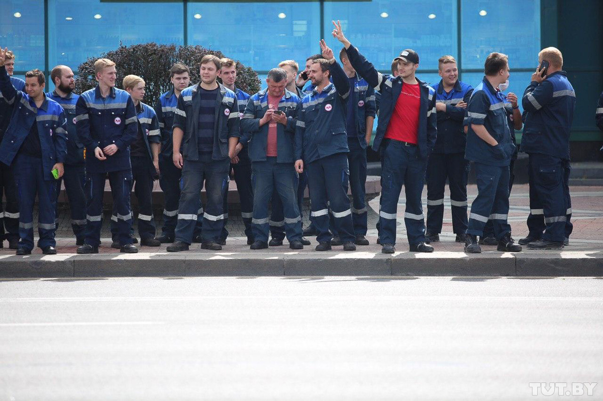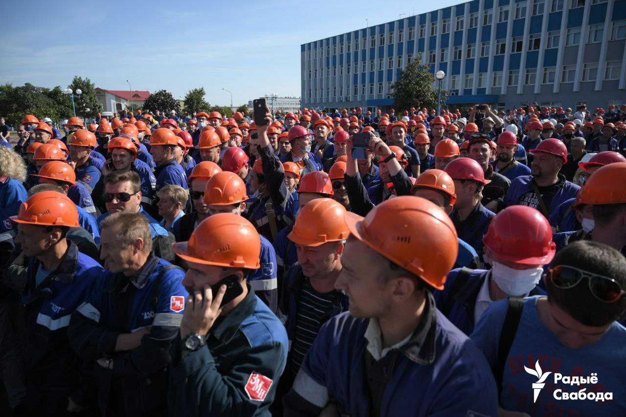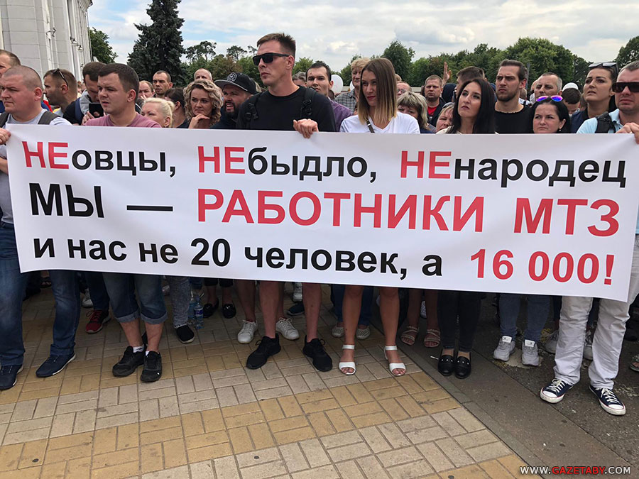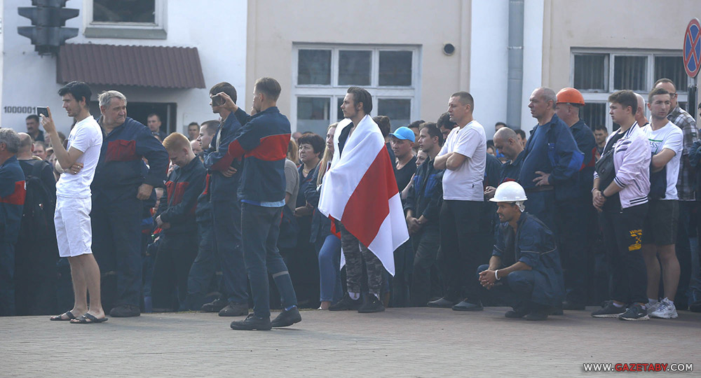 15.20. Работники МТЗ начали забастовку утром, а к обеду во дворе тракторного завода собралось порядка тысячи человек. Они озвучили требования: освободить политзаключенных, снять «нелегитимного президента», назначить новые выборы, прекратить насилие.